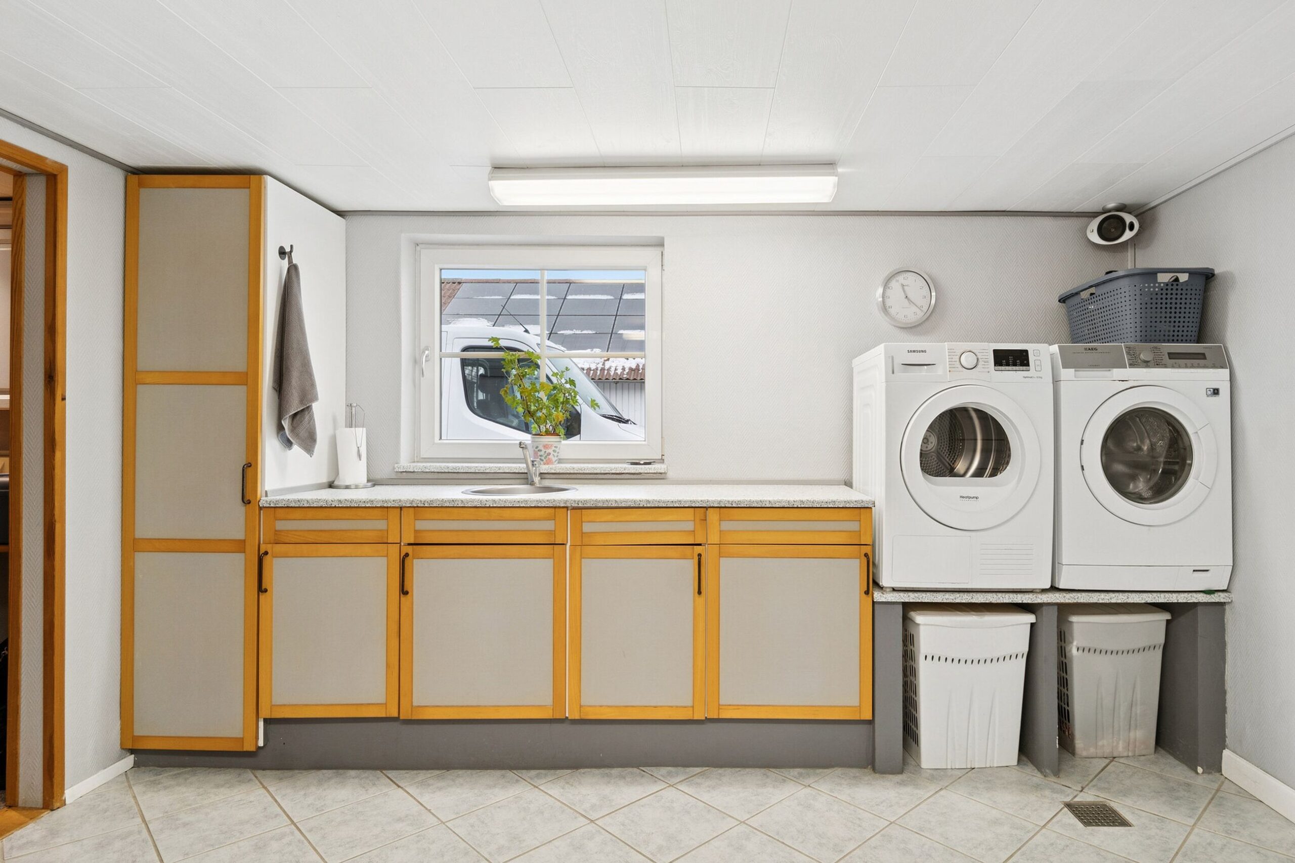 I store dele af stueetagen er der gulvvarme og i det øvrige er der radiatorer.