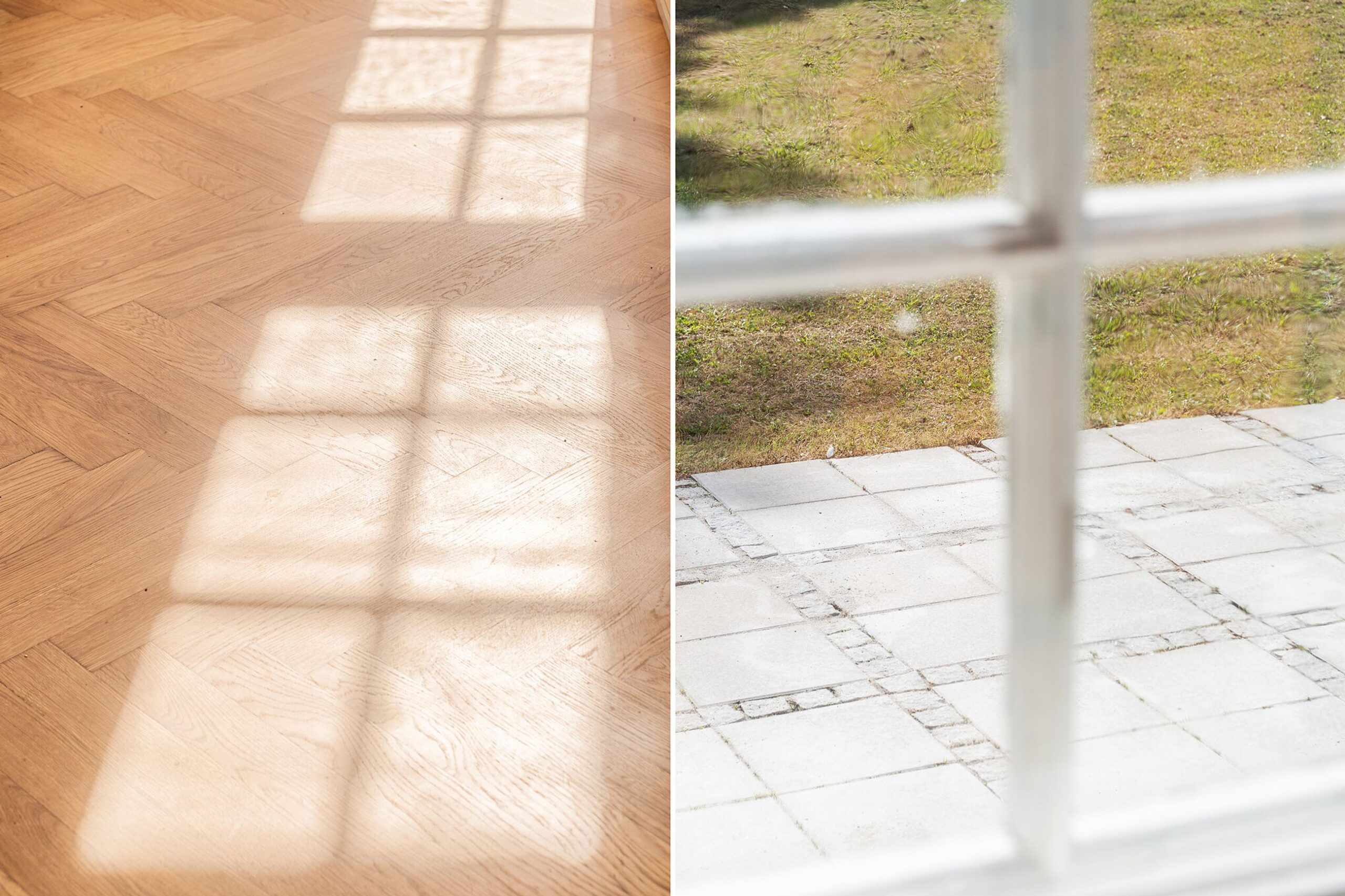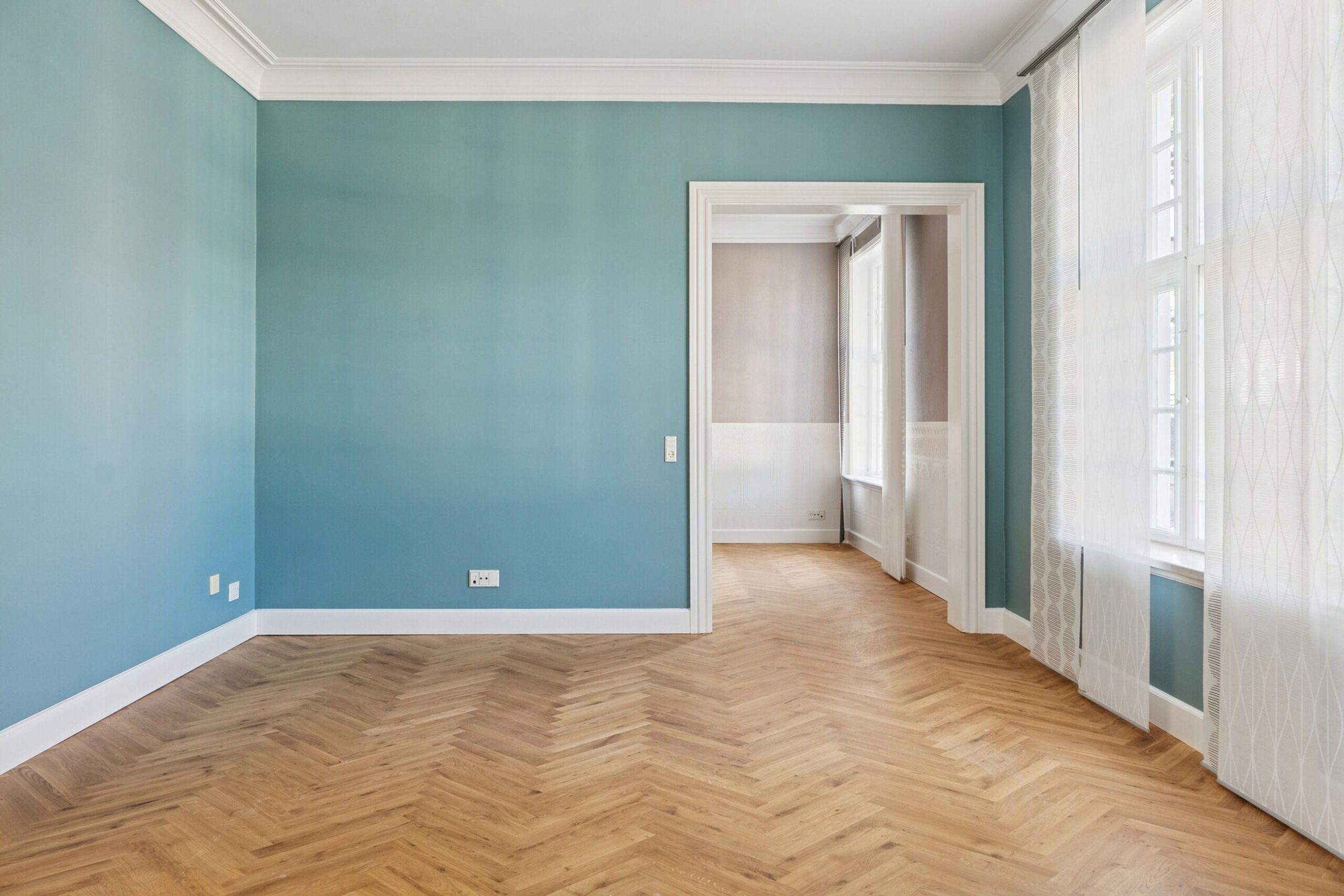 Kedeligt bliver det aldrig, når man bevæger sig rundt. Der er altid noget smukt at dvæle ved; om det er det fine trappeforløb, de franske, hvælvede døre ud til haven, de levende farver i entréens runde vindue eller de flotte fyldningspaneler i stuen. Samtidig er hjemmet tydeligt moderniseret, så du rykker livet ind i tidssvarende rammer.