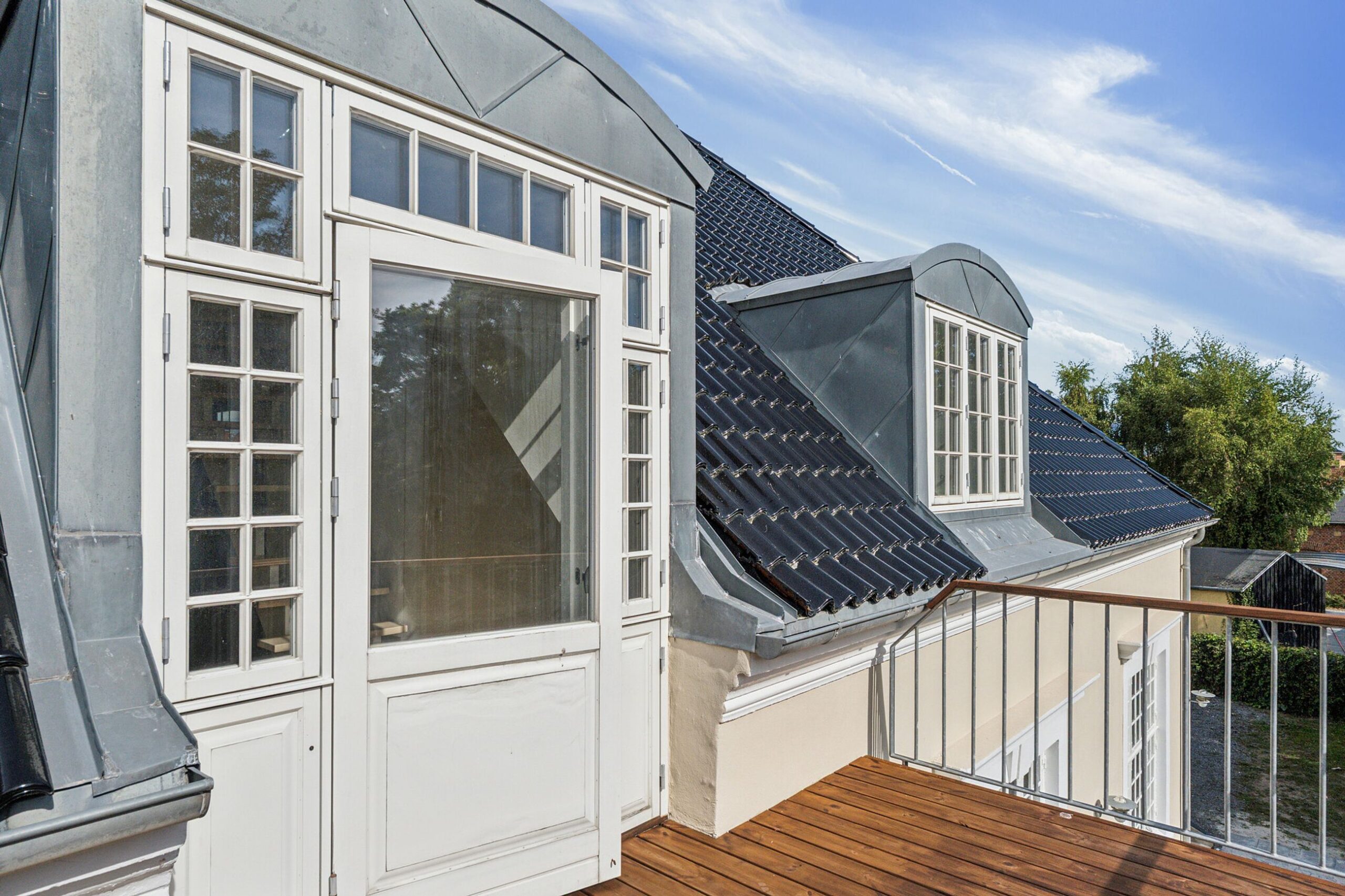 Her skal være plads til kvalitetstid, og det er der også i den integrerede havestue, på terrassens smukke rådhusbelægning og i det hele taget i haven, som er nem at holde. Høje træer gemmer dig væk fra civilisationen, og bevæger du dig op på balkonen, hæver udsigten sig tilsvarende op mod de gamle, grønne trækroner – hvilket bedre sted at indtage kaffen end netop her?